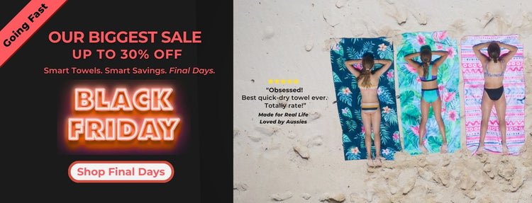 Black Friday? Ours is Coral. Sand-free towels. Summer-ready. Up to 30% off while it lasts.