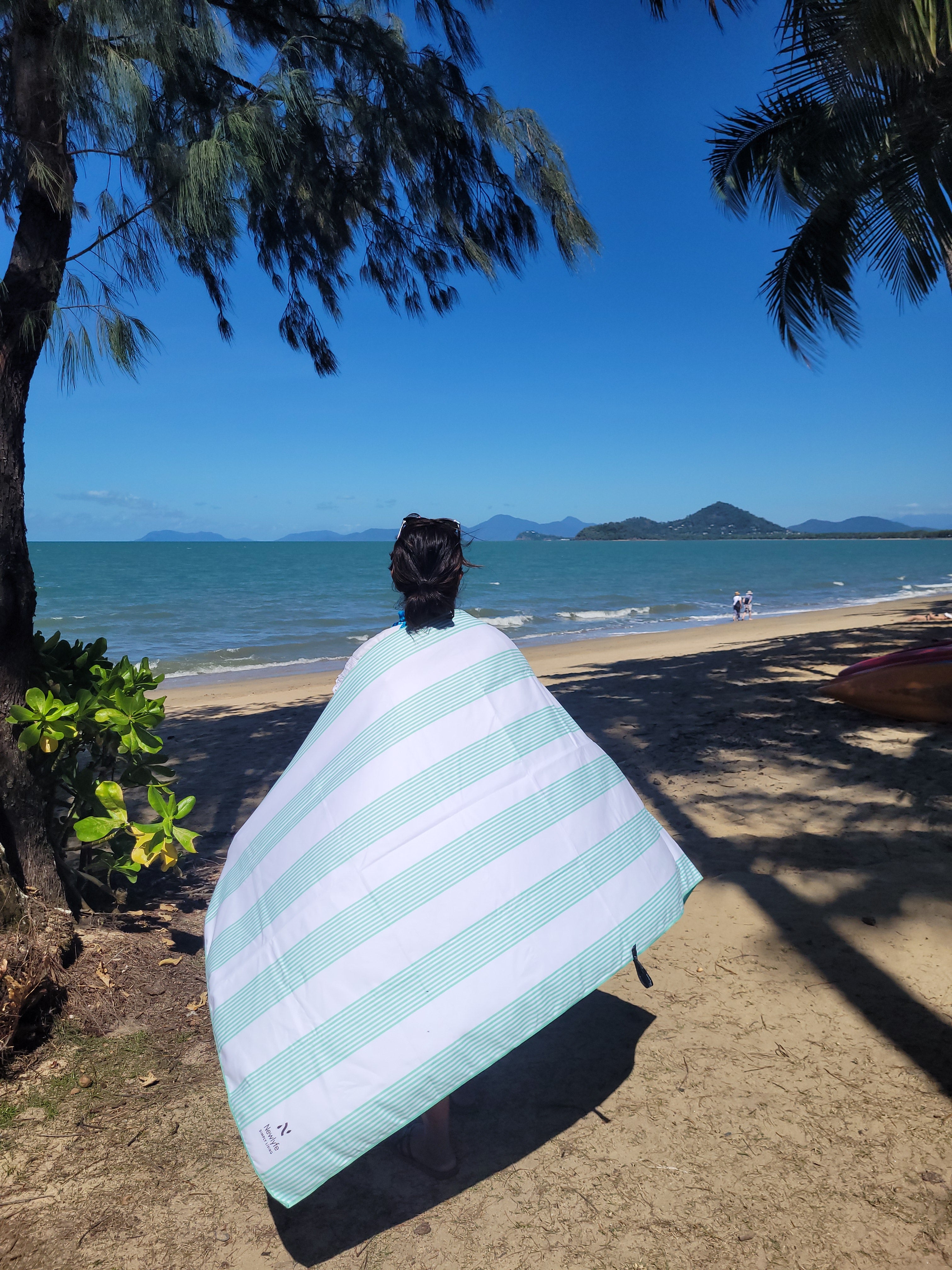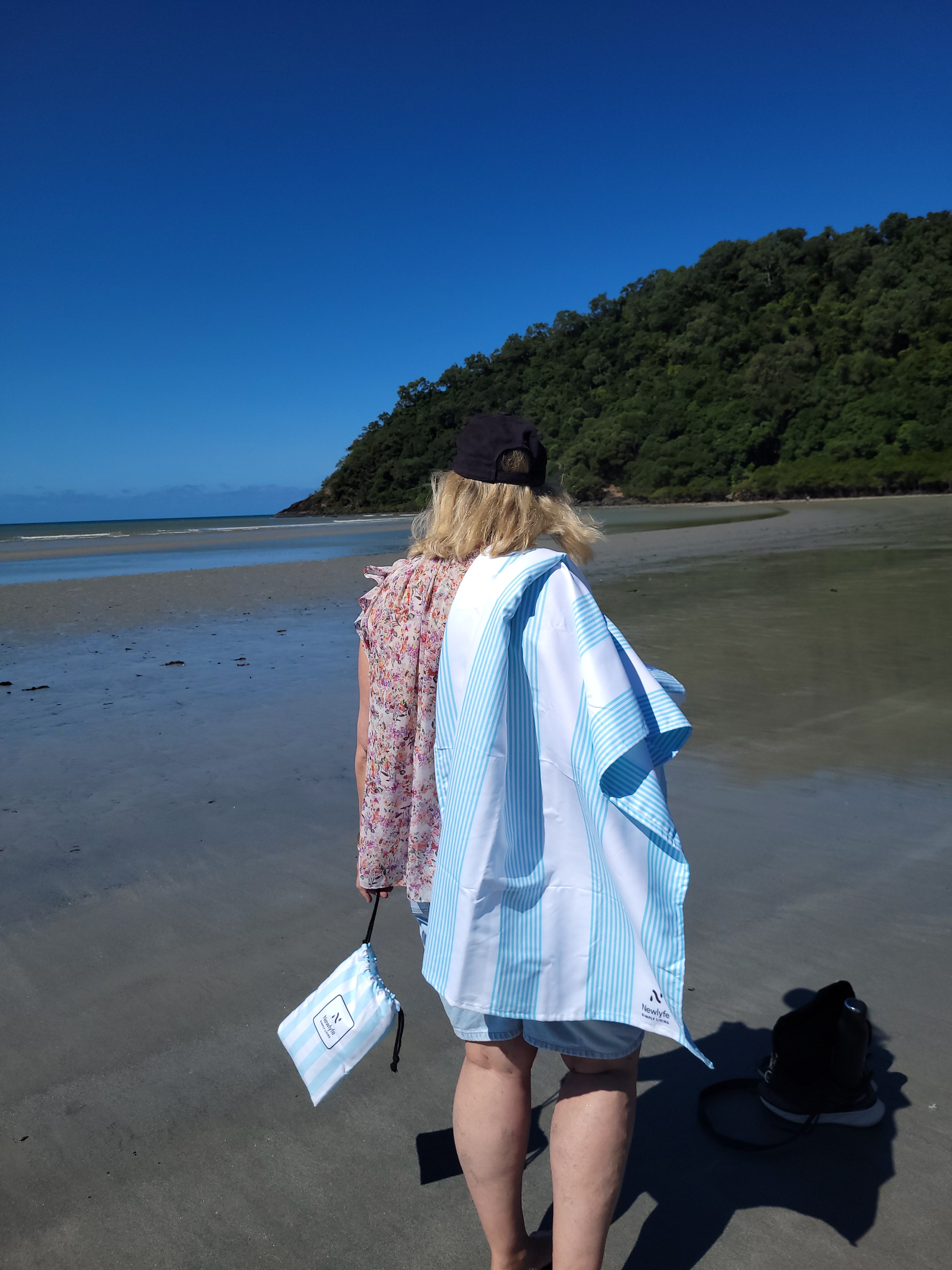No more heavy, bulky, sandy beach towels that take forever to dry! Newlyfe Signature Beach Towels are quick dry, silky soft, huge rolled out yet fold down to the size of a water bottle and weigh just 330grams, so they’re easy to pack and carry! Hang them anywhere with the handy snap lock hanging loop, ideal for the beach, pool, caravan, camping, and more!