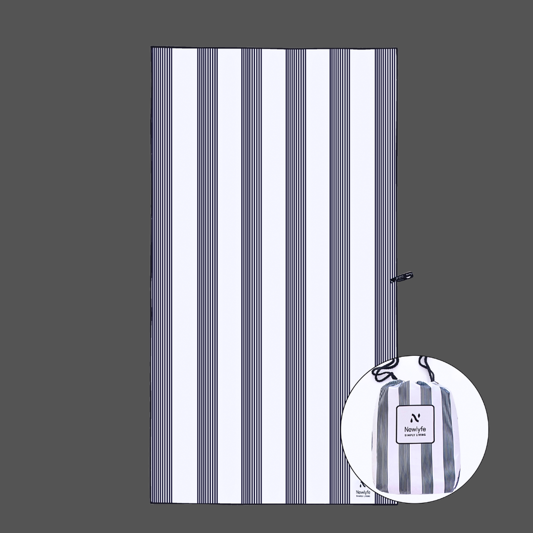 The Signature Collection takes everything you love about Newlyfe towels, sand-free, quick-dry, compact, lightweight and gives it a sophisticated twist. The Amalfi Navy print blends Newlyfe performance with a refined nautical look.